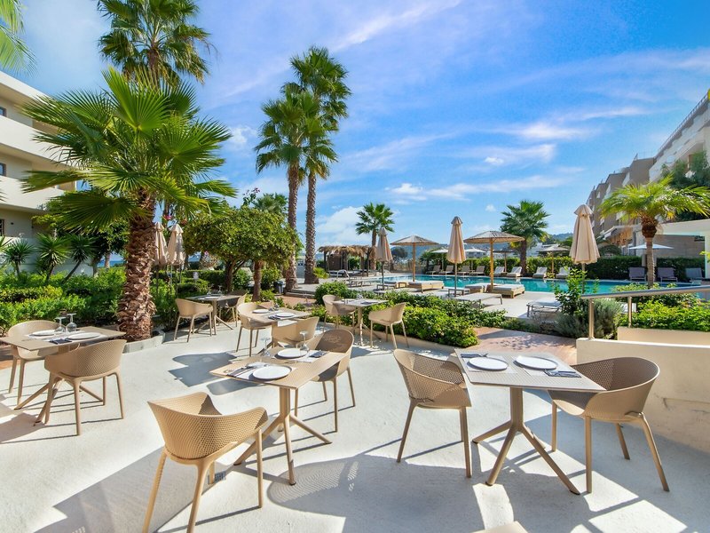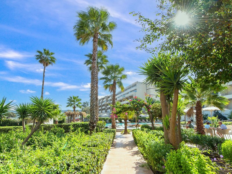 Lage & Umgebung Das Hotel befindet sich nur 7 km entfernt von dem in der Neustadt von Rhodos gelegenen kosmopolitischen Gebiet am Mandraki-Hafen mit seinen attraktivem Jachthafen, moderner italienischer Architektur, Wassercafés im Freien und modernen Einkaufsmöglichkeiten. Das Hotel liegt direkt am Strand an der Bucht von Ialyssos. In unmittelbarer Nähe des Hotels gibt es einen Einkaufsbereich, in dem die Gäste zahlreiche griechische Restaurants, Cafés und eine Vielzahl von Souvenirgeschäften vorfinden. Das griechische Dorf Trianda erreicht man über einen Weg entlang der Küstenstraße nach ca. 1 km, und das Zentrum von Ixia ist nach ungefähr 1,5 km erreicht. Dort liegen eine Vielzahl an Supermärkten, Geschäften Cafés und Bars für jeden Geschmack.