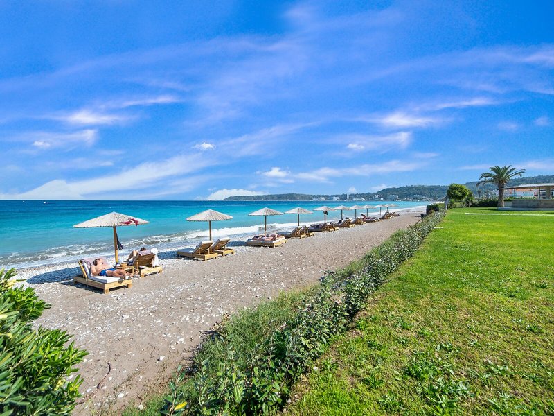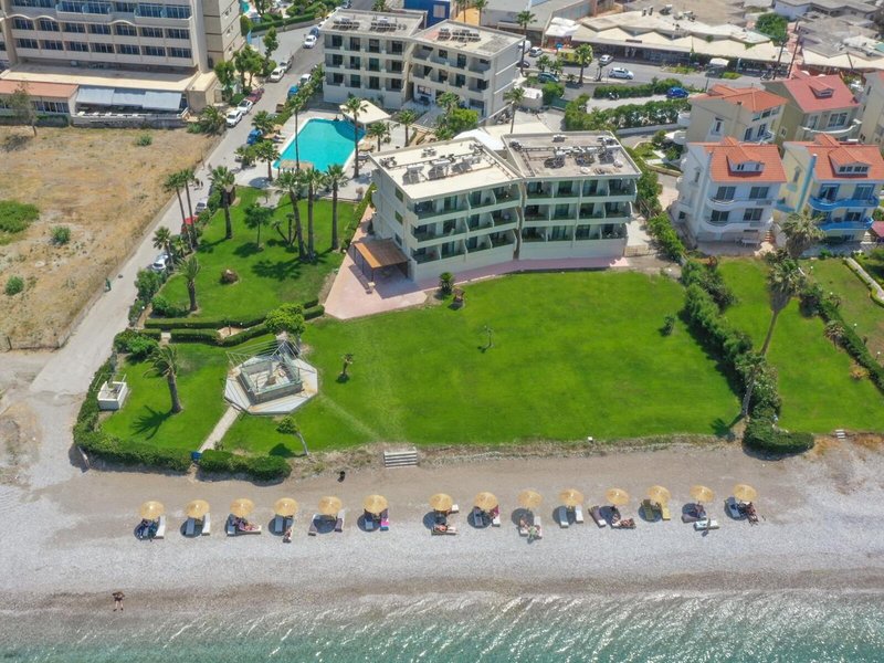 Poloha a okolie Hotel sa nachádza len 7 km od kozmopolitnej oblasti prístavu Mandraki v Novom meste Rhodos s atraktívnym prístavom, modernou talianskou architektúrou, vonkajšími nábrežnými kaviarňami a modernými nákupnými zariadeniami. Hotel sa nachádza priamo na pláži v zálive Ialyssos. V bezprostrednej blízkosti hotela sa nachádza nákupná zóna, kde hostia nájdu početné grécke reštaurácie, kaviarne a rôzne obchody so suvenírmi. Do gréckej dediny Trianda sa dostanete po ceste pozdĺž pobrežnej cesty asi po 1 km a centrum Ixia je vzdialené asi 1,5 km. Existuje množstvo supermarketov, obchodov, kaviarní a barov, ktoré vyhovujú každému vkusu.