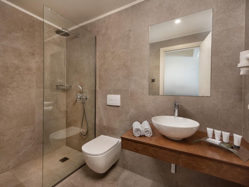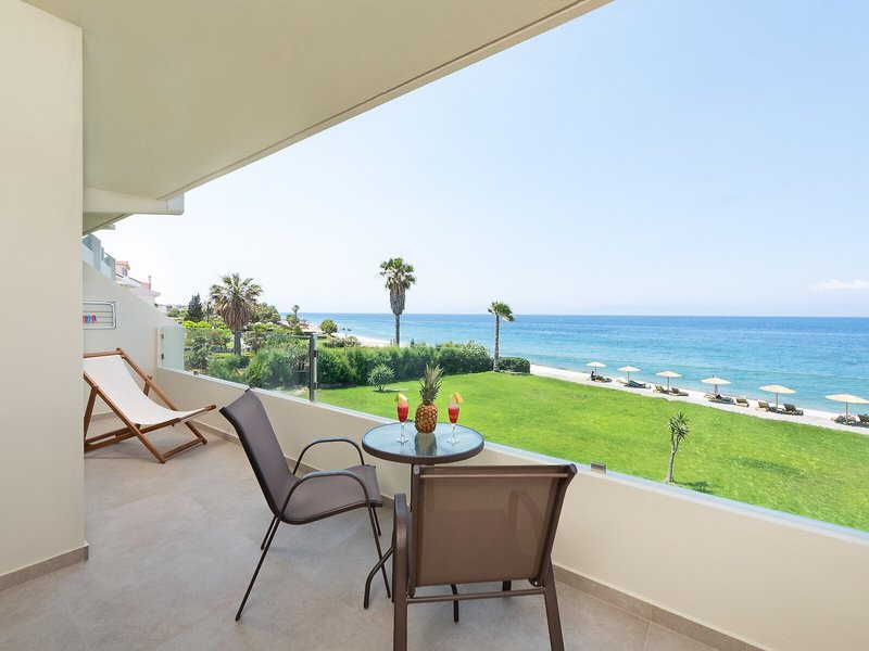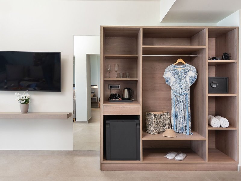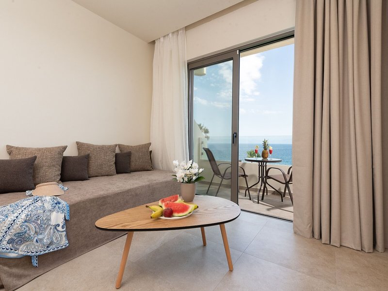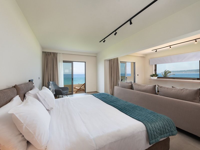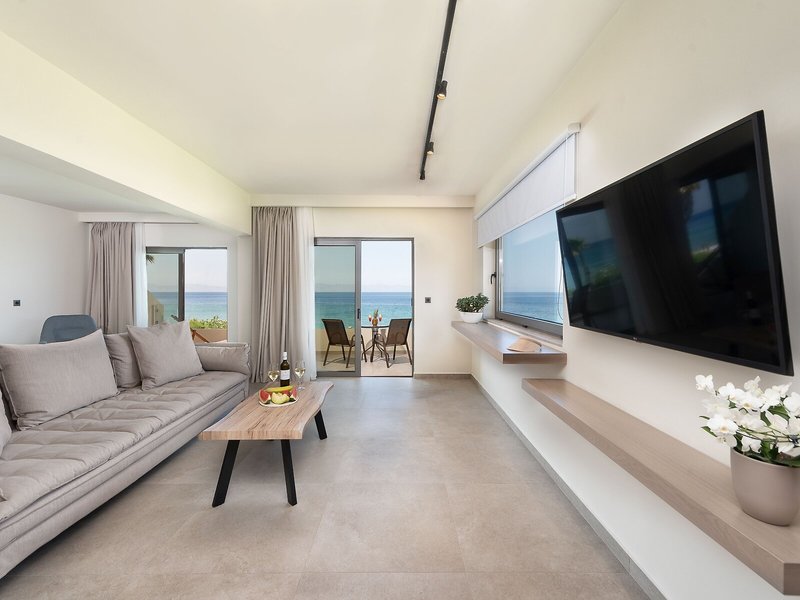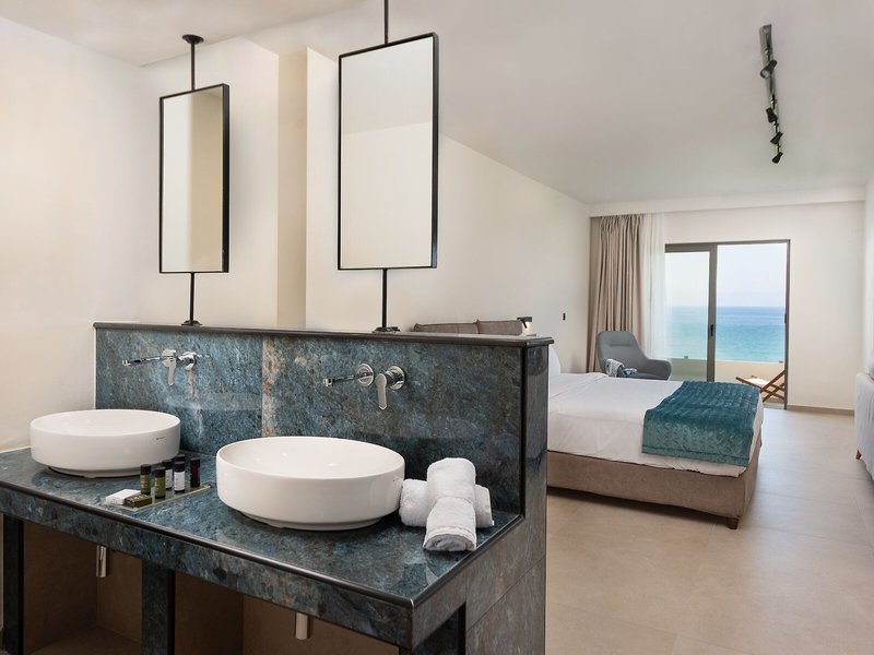 Ubytovanie: Klimatizácia a individuálne ovládané kúrenie zabezpečujú príjemnú vnútornú klímu v izbách. Hostia si môžu vychutnať výhľad na more zo svojho balkóna alebo terasy. Izby majú posteľ king a rozkladaciu pohovku. K dispozícii sú samostatné spálne. K dispozícii je aj trezor, minibar a písací stôl. Kuchynka je vybavená chladničkou, minichladničkou a príslušenstvom na prípravu čaju/kávy. Pre väčšie pohodlie hostí je k dispozícii súprava na žehlenie. Okrem toho je k dispozícii telefón s priamou voľbou, TV, stereo systém a WiFi (bez poplatku). K ďalšiemu vybaveniu patria papuče. Kúpeľňa je vybavená sprchovacím kútom, vaňou, sušičom vlasov a telefónom. Pre väčšie pohodlie sú v kúpeľniach toaletné potreby a výber uterákov.