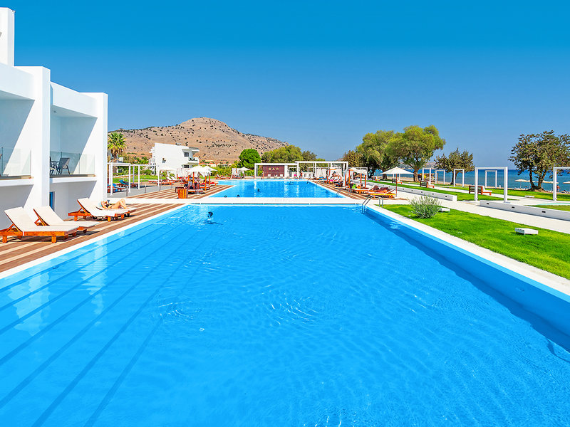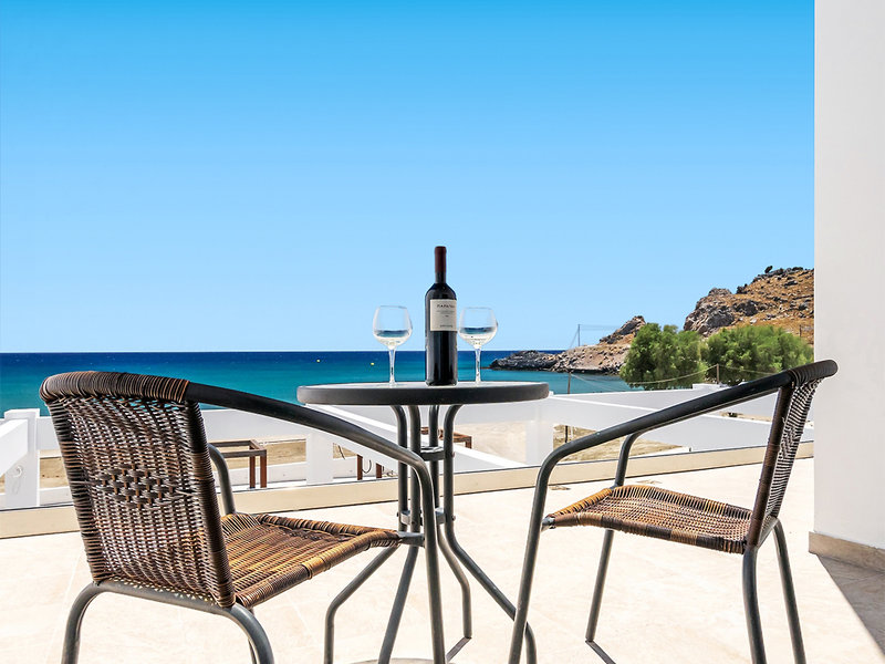 Lage: Direkt am sanft abfallenden, weitläufigen Strand gelegen (Sandstrand, durchsetzt mit groben Kieselsteinen, Badeschuhe empfohlen), befindet sich das Kamari Plus Hotel in ruhiger Umgebung im Feriengebiet von Lardos. Das Zentrum von Lardos mit charmanten Kafenions, Einkaufsmöglichkeiten, Restaurants und Bars ist etwa 2 km entfernt. Das malerische Dorf Lindos mit seiner beeindruckenden Akropolis liegt rund 8 km entfernt. Eine Bushaltestelle befindet sich in ca. 200 m Entfernung, und der internationale Flughafen Rhodos ist etwa 60 km entfernt.