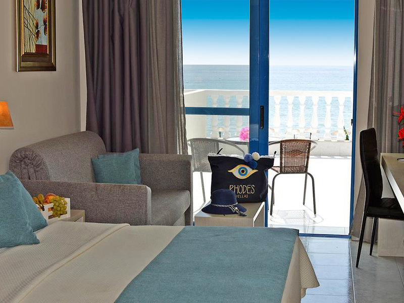 Doppelzimmer (DZM, ca. 18-35 qm) Klimaanlage, Kühlschrank, TV (32 Zoll), Telefon, WLAN, Safe. Dusche, WC, Föhn. Balkon oder Terrasse mit Meerblick. Max. 3E
