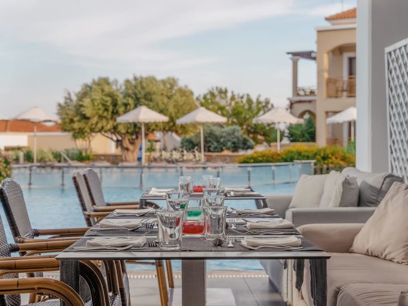 - Špecializovaná reštaurácia „Meze Meze“ s gréckou tematikou: vhodná pre všetky vekové kategórie, kuchyňa: grécka, regionálna, à la carte, nutná rezervácia, bezplatná, zahrnuté v cene all inclusive, v závislosti od počasia, niekoľkokrát týždenne 18:30 – 22:00, s terasou, pri bazéne, k dispozícii je detská stolička, elegantný dress code