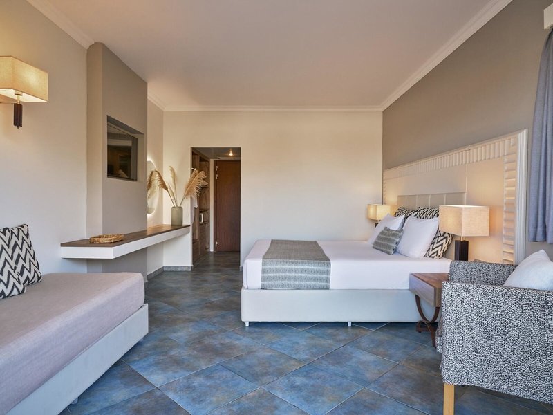 - Family room sea view with sliding doors (FZM1), Familienzimmer, Meerblick, ca. 30 m², Gesamtanzahl der Räume in diesem Zimmertyp: 2, Aufteilung wie folgt: bestehend aus 2 Zimmern, optisch getrennt durch Schiebetür, 1 Doppelbett, 2 Schlafsofas, Babybett: ohne Gebühr, Anfrage & Reservierung notwendig, Moskitonetz, Klimaanlage: ohne Gebühr, wetterabhängig, individuell regelbar, zentral gesteuert, kalt, Fußboden: Fliesenboden, Safe: ohne Gebühr, Kühlschrank: ohne Gebühr, Kaffee-/Teezubereiter, Telefon, Internet: WLAN/WiFi: ohne Gebühr, Fernseher: Flatscreen, im Schlafzimmer, deutsches Programm, Sat-TV, Reinigungsservice: täglich, ohne Gebühr, bei All Inclusive inklusive, Dusche, WC, Slipper: ohne Gebühr, Föhn, Balkon oder Terrasse: mit Sitzgelegenheit