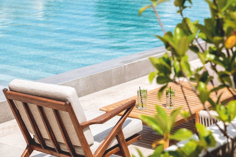 Junior suity s výhľadom na more: Junior suity s výhľadom na more sú štýlovo zariadené s obývacou izbou/spálňou, klimatizáciou, vaňou, WC, sušičom vlasov, telefónom s priamou voľbou, TV so satelitným príjmom, Wi-Fi, trezorom, kávovarom Nespresso, chladničkou a balkónom. alebo terasa (J2M).