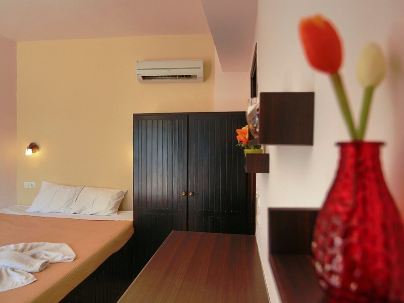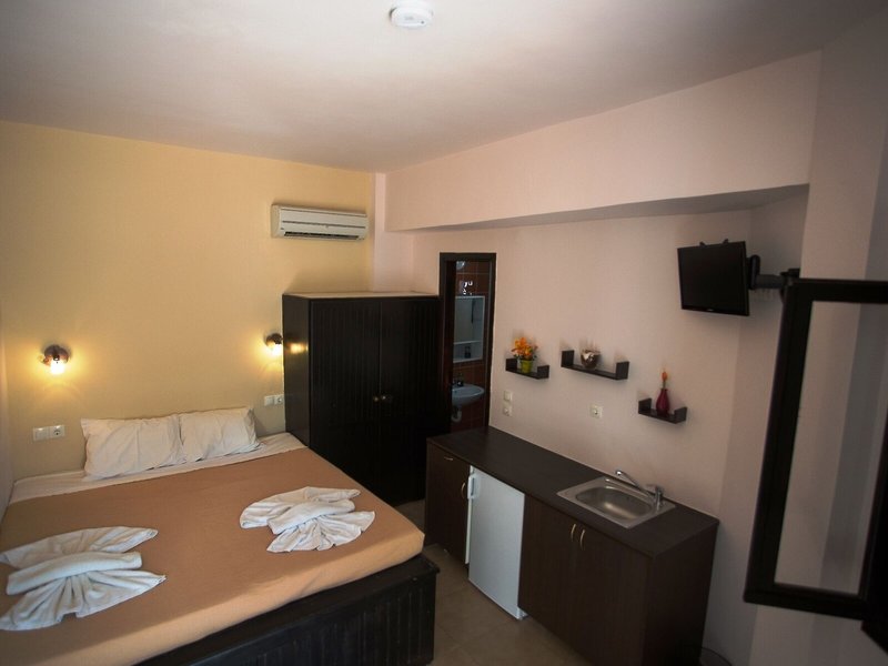 Ubytovanie: Izby majú kuchyňu a kúpeľňu a klimatizácia zabezpečuje dokonalú vnútornú klímu. Hostia si môžu vychutnať výhľad na more z balkóna alebo terasy. Izby sú vybavené manželskou posteľou. Prístelky je možné vyžiadať. Trezor poskytuje najlepšiu ochranu vecí hostí. K dispozícii je plne vybavená kuchynka s chladničkou, minichladničkou, sporákom, zariadením na prípravu čaju/kávy a rúrou. Pre pohodlie hostí je k dispozícii žehliaca súprava. K dispozícii je aj telefón, TV a Wi-Fi (bezplatne). Kúpeľňa so sprchovacím kútom a vaňou poskytuje hosťom sušič vlasov a kozmetické zrkadlo. Pre väčšie pohodlie sú v kúpeľniach k dispozícii toaletné potreby. Hotel ponúka nefajčiarske izby.