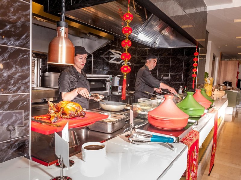 - Hauptrestaurant: Küche: griechisch, international, mediterran, regional, glutenfreie Gerichte, lactosefreie Gerichte, vegetarische Gerichte, Buffet, Showcooking, klimatisierbar, angemessene Kleidung erwünscht