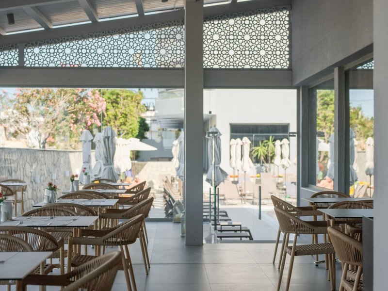 - Hlavná reštaurácia: Kuchyňa: grécka, medzinárodná, stredomorská, regionálna, bezlepkové jedlá, bezlaktózové jedlá, vegetariánske jedlá, bufet, show cooking, klimatizovaná, vhodné oblečenie