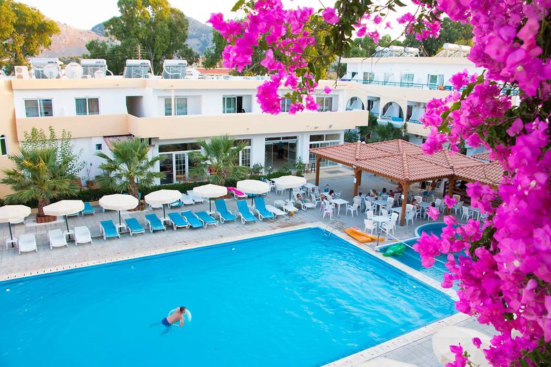 Ausstattung: Die insgesamt 140 Zimmer verteilen sich auf einen Haupthaus und mehrere Nebengebäude. Zur Ausstattung gehören eine Rezeption (24 h), eine Lobby und ein Hauptrestaurant. Das Wi-Fi ist in der gesamten Hotelanlage kostenfrei. Im Außenbereich befindet sich der Swimmingpool mit Sonnenterrasse, kostenfreien Liegen und Schirmen und separatem Kinderpool sowie einer Pool-/Snackbar. Badetücher sind gegen Kaution erhältlich. Ein Parkplatz steht den Gästen am Hotel kostenfrei zur Verfügung (nach Verfügbarkeit).