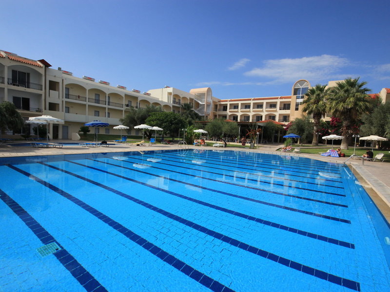 Lage & Umgebung Das Hotel ist ruhig in Kolimbia an der Südostküste von Rhodos gelegen und nur wenige Gehminuten vom Strand entfernt. Geschäfte und Tavernen sind gut zu Fuß erreichbar. Die bekannte Sandstrandbucht "Tsambika" ist einen Ausflug wert. Lindos mit seinen Sehenswürdigkeiten und Rhodos-Stadt ist per Bus oder Taxi ebenfalls gut zu erreichen. Transferzeit: ca. 40-80 Minuten.
