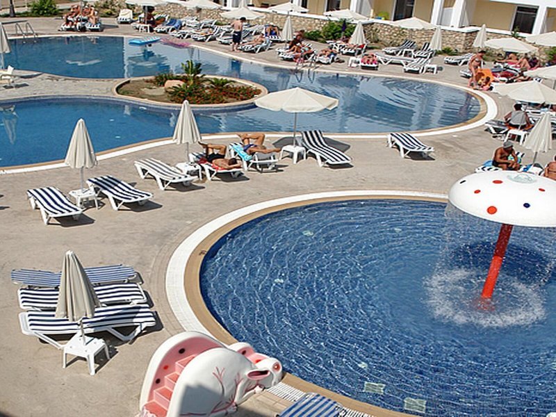 - Bazény: Detský bazén, vonkajší bazén, slnečníky pri bazéne, ležadlá pri bazéne