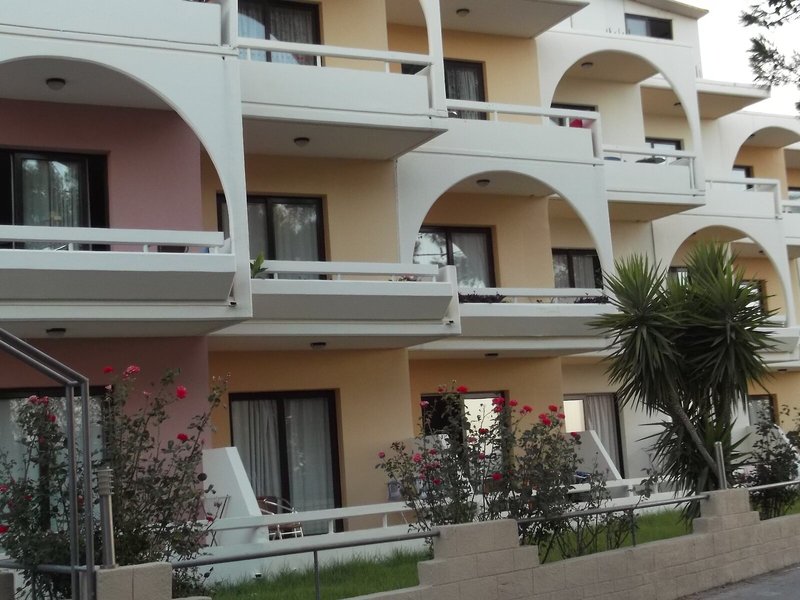 Poloha a okolie Hotel sa nachádza na svahu na okraji zálivu Larkido, no napriek tomu len 1 500 metrov od turistického centra a centra prímorského letoviska Faliraki. Pláž je vzdialená približne 15 minút chôdze a letisko Rhodos Diagoras je od hotela vzdialené približne 20 km.