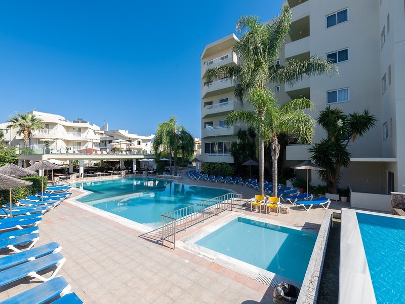 Sport & Fitness: Die Außenpoolanlage mit Kinderbereich eignet sich hervorragend für aktive Erholung und regelmäßiges Aquatraining. Auch eine Terrasse mit Sonnenliegen und Sonnenschirmen ist vorhanden. Eine Pool-/Snackbar ist vorhanden. Wer auch auf Reisen nicht auf Sport verzichten möchte, dem bietet das Hotel Radfahren/Mountainbiking. Freunde des Wassersports können sich bei Windsurfen, Schnorcheln und Tauchen vergnügen. Den Gästen steht im Apartmenthotel mit einem Fitnessstudio, Tischtennis, Billard und Aerobic ein breites Spektrum an Indoor-Sportarten zur Auswahl. Zum Wellnessangebot des Hotels gehören ein Spa und Massage-Anwendungen. Ein Animationsprogramm und ein Nachtclub runden das Angebot ab.
