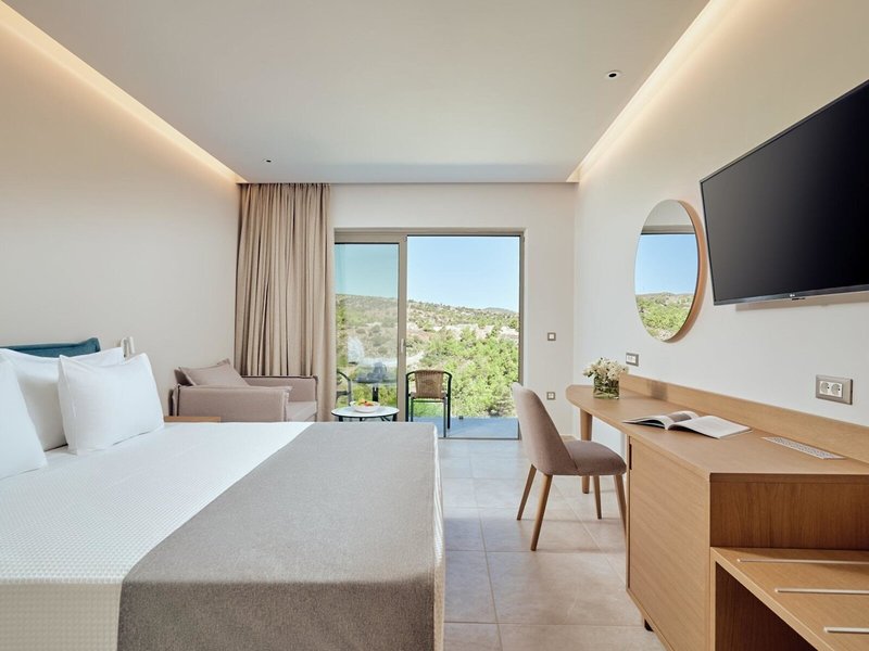 - Double Room Pool View (DZM1), Doppelzimmer, Nichtraucherzimmer, im Hauptgebäude, Meerblick, Poolblick, ca. 25 m², letzte Komplettrenovierung 2020, Gesamtanzahl der Räume in diesem Zimmertyp: 1, Aufteilung wie folgt: 1 Schlafzimmer, 1 Doppelbett, 1 Schlafsofa, Babybett: ohne Gebühr, Reservierung notwendig, Klimaanlage: ohne Gebühr, Juni - September, zentral gesteuert, kalt, Fußboden: Fliesenboden, Safe: gegen Gebühr, Kühlschrank: ohne Gebühr, Telefon, Internet: WLAN/WiFi: ohne Gebühr, Fernseher: Flatscreen, deutsches Programm, Sat-TV, Reinigungsservice: täglich, ohne Gebühr, Badewanne oder Dusche, WC, Föhn, Balkon: mit Sitzgelegenheit