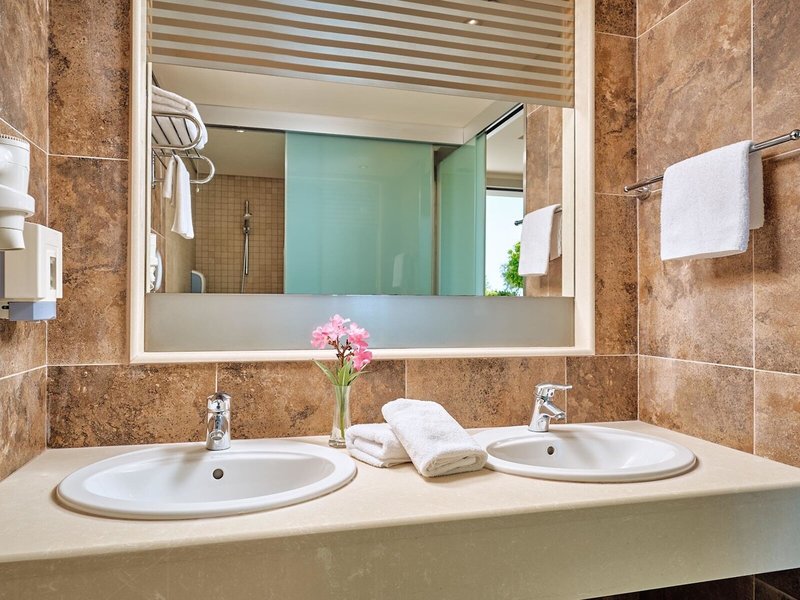 - Dvojlôžková izba s výhľadom na bazén (DZM1), dvojlôžková izba, nefajčiarska izba, v hlavnej budove, výhľad na more, výhľad na bazén, cca 25 m², naposledy kompletne zrekonštruovaná v roku 2020, celkový počet izieb v tomto type izby: 1, rozloženie: 1 spálňa, 1 manželská posteľ, 1 rozkladacia pohovka, detská postieľka: zadarmo, rezervácia nutná, klimatizácia: zadarmo, jún - september, centrálne ovládaná, chladenie, podlaha: dlažba, trezor: za poplatok, chladnička: zadarmo, telefón, internet: WLAN/WiFi: zadarmo, televízor: plochá obrazovka, nemecké kanály, satelitná TV, upratovacia služba: denne, zadarmo, vaňa alebo sprcha, WC, fén, balkón: s posedením