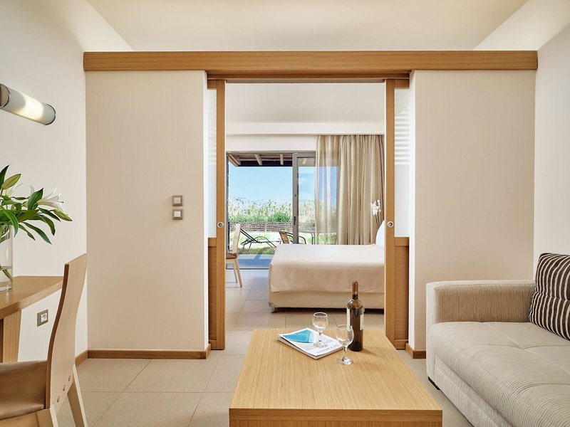 - Family Room Sea View (FZM1), Nichtraucherzimmer, im Nebengebäude, Meerblick, ca. 30 m², letzte Komplettrenovierung 2020, Gesamtanzahl der Räume in diesem Zimmertyp: 2, Aufteilung wie folgt: bestehend aus 2 Zimmern, optisch getrennt durch Schiebetür, 1 Doppelbett, 1 Schlafsofa, Klimaanlage: ohne Gebühr, Juni - September, individuell regelbar, kalt, Fußboden: Fliesenboden, Safe: gegen Gebühr, Schreibtisch, Kühlschrank: ohne Gebühr, Internet: WLAN/WiFi: ohne Gebühr, Fernseher: Flatscreen, deutsches Programm, Sat-TV, Reinigungsservice: täglich, ohne Gebühr, Dusche, WC, Föhn, Balkon: mit Sitzgelegenheit