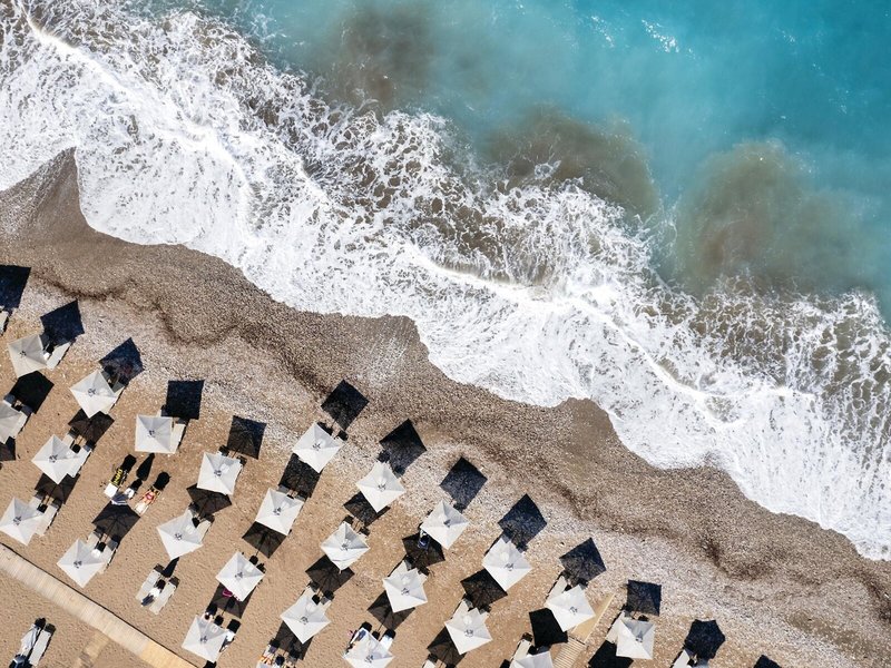 - Pláž: štrková, strmá, dĺžka pláže: cca 2 km, schody na pláž, odporúčaná obuv, ležadlá: zadarmo, slnečníky: zadarmo.
