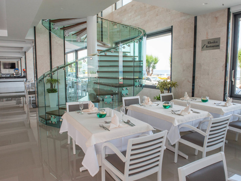 - Hauptrestaurant „RHODOS RESTAURANT“: Küche: chinesisch, griechisch, international, landestypisch, mediterran, Fisch/Meeresfrüchte, vegetarische Gerichte: ohne Gebühr, bei All Inclusive inklusive, Buffet, Showcooking, Reservierung nicht notwendig, ohne Gebühr, bei All Inclusive inklusive, saisonabhängig, täglich 07:00 Uhr - 10:00 Uhr, 10:00 Uhr - 10:45 Uhr, 12:30 Uhr - 15:00 Uhr und 18:30 Uhr - 21:30 Uhr, mit Terrasse, am Pool, angemessene Kleidung erwünscht
