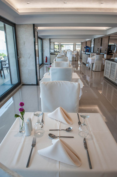 - Hlavná reštaurácia RHODES RESTAURANT: Kuchyňa: čínska, grécka, medzinárodná, typická pre danú krajinu, stredomorská, ryby/morské plody, vegetariánske jedlá: zdarma, v cene All Inclusive, bufet, show cooking, rezervácia nie je nutná, zdarma, v cene s All Inclusive, sezónne, denne 7:00 - 10:00, 10:00 - 10:45, 12:30 - 15:00 a 18:30 - 21:30, s terasou. pri bazéne, vyžaduje sa vhodné oblečenie