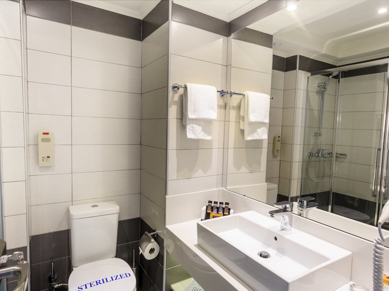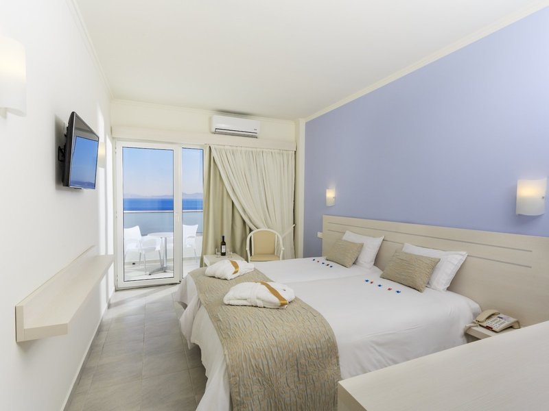 - Dvojlôžková izba Superior s výhľadom na more (DZM2), dvojlôžková izba, nefajčiarska izba, minimálny vek v izbe: 16 rokov, v prístavbe, výhľad na more, cca 14 - 15 m², posledná kompletná rekonštrukcia v roku 2015, celkový počet izieb v tomto type izby: 1, rozloženie: kombinovaná Obývacia izba/spálňa, 2 samostatné postele (0,9x2cm), klimatizácia: individuálne nastaviteľná, studená, podlaha: dlažba, trezor: bez poplatku, príslušenstvo na prípravu kávy/čaju, minibar: nealkoholické nápoje, voda, dopĺňanie zásob minibaru: niekoľkokrát týždenne, telefón, internet: WLAN/WiFi, televízor: plochá obrazovka, v spálni, nemecký program, satelitná TV, rádio, vaňa alebo sprcha, WC, Fén, balkón alebo terasa: s posedením