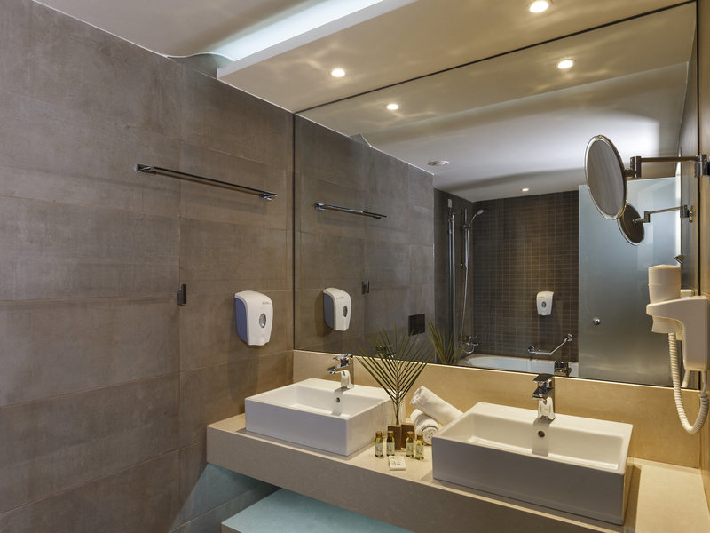 - Family Room Sea View (FZM5), Familienzimmer, Nichtraucherzimmer, im Hauptgebäude, Meerseite, Meerblick, ca. 38 m², letzte Komplettrenovierung 2015, Gesamtanzahl der Räume in diesem Zimmertyp: 2, Aufteilung wie folgt: bestehend aus 2 Zimmern, optisch getrennt durch Schiebetür, 2 Einzelbetten, 1 Doppelbett, 1 Zustellbett, Babybett: ohne Gebühr, Anfrage notwendig, Klimaanlage: ohne Gebühr, Juni - September, zentral gesteuert, kalt, Fußboden: Fliesenboden, Safe: ohne Gebühr, Schreibtisch, Kaffee-/Teezubereiter, Minibar: ohne Gebühr, Softdrinks: ohne Gebühr, Wasser: ohne Gebühr, alkoholische Getränke: ohne Gebühr, Minibarauffüllung: mehrmals pro Woche, Telefon, Internet: WLAN/WiFi: ohne Gebühr, Fernseher: Flatscreen, im Schlafzimmer, deutsches Programm, Sat-TV, Reinigungsservice: täglich, ohne Gebühr, Dusche, WC, Föhn, Kosmetikspiegel, Terrasse: mit Sitzgelegenheit