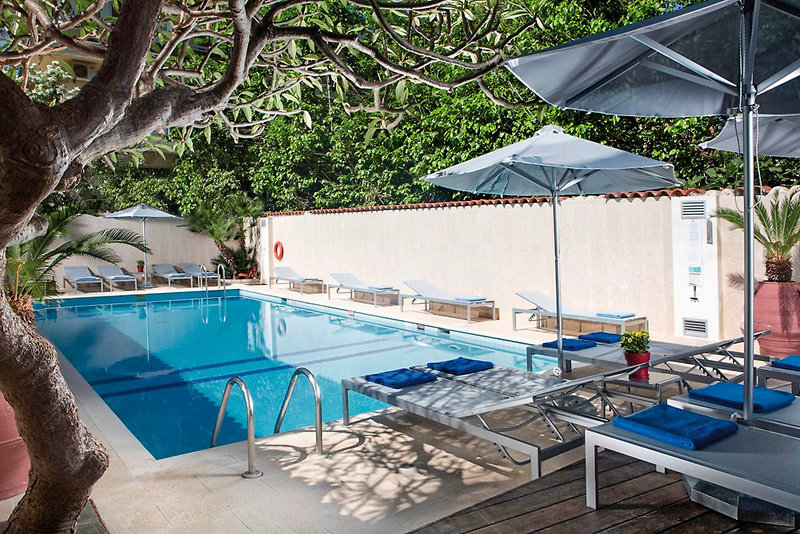 - 16-20 qm, Doppel, Poolblick oder Stadtblick, Dusche, WC, Haartrockner, Klimaanlage, Safe, TV (Sat-TV), WLAN, Wasserkocher, Kühlschrank, Balkon (möbliert)