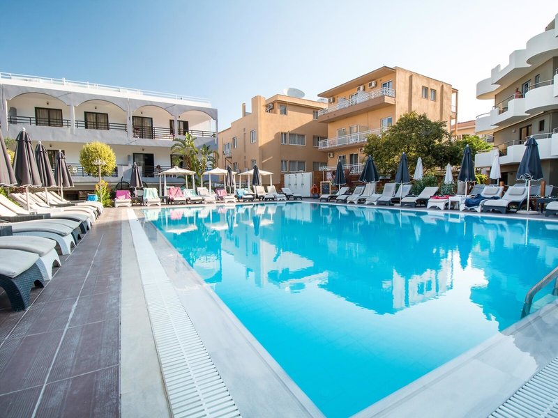 Poloha a okolie Hotelový komplex sa nachádza v severnej časti Rodosu, asi 100 m od pláže Ixia. Krištáľovo čistá voda láka na plávanie, windsurfing a vodné športy. Do hlavného mesta ostrova, ktoré fascinuje starým mestom, ktoré je zapísané do svetového dedičstva UNESCO, je to asi 5 km.