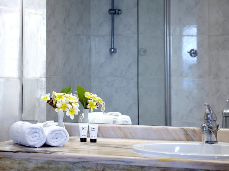 - Standard Room Sea View (DZM1), Doppelzimmer, Nichtraucherzimmer, im Nebengebäude, Meerseite, Meerblick, Poolblick, ca. 27 m², letzte Teilrenovierung 2015, Gesamtanzahl der Räume in diesem Zimmertyp: 1, Klimaanlage: Juni - September, zentral gesteuert, Fußboden: Fliesenboden, Safe, Minibar: ohne Gebühr, Wasser, Telefon, Internet: WLAN/WiFi: ohne Gebühr, Fernseher: Flatscreen, Badewanne oder Dusche, WC, Balkon: mit Sitzgelegenheit, Balkon oder Terrasse: mit Sitzgelegenheit