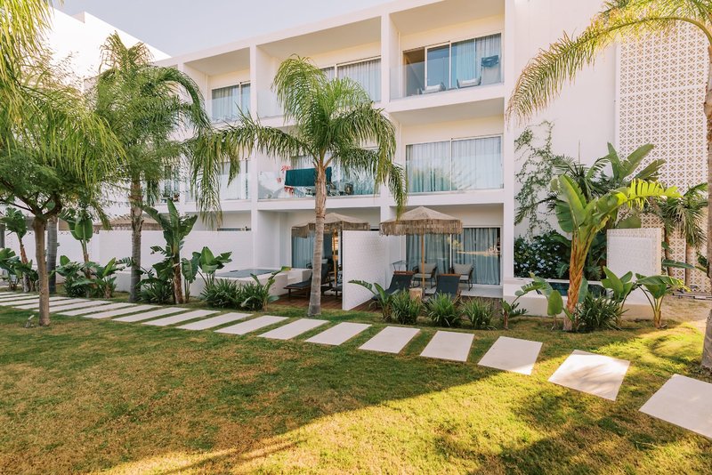 Ausstattung: Das moderne Adults-only-Hotel (buchbar für Gäste ab 16 Jahre) verfügt über 63 Wohneinheiten, verteilt auf 2 Etagen, mit Rezeption, Lobby, Wi-Fi in der gesamten Anlage (inklusive) sowie eine Bar. Erleben Sie besondere kulinarische Gaumenfreuden im Terra Med Restaurant mit angrenzender Außenterrasse. In der gepflegten Außenanlage laden Swimmingpool und Sonnenterrasse mit Liegen, Balibetten sowie Sitz- und Liegekissen zum Relaxen ein. Liegen und Schirme sind am Pool inklusive, am Strand gegen Gebühr. Badetücher sind gegen eine Kaution erhältlich.