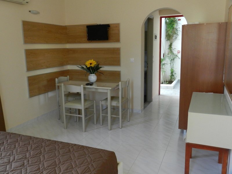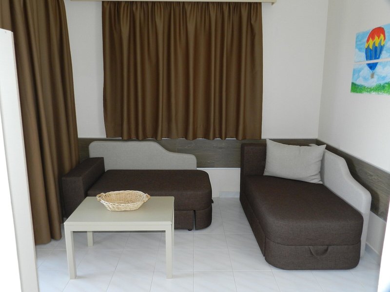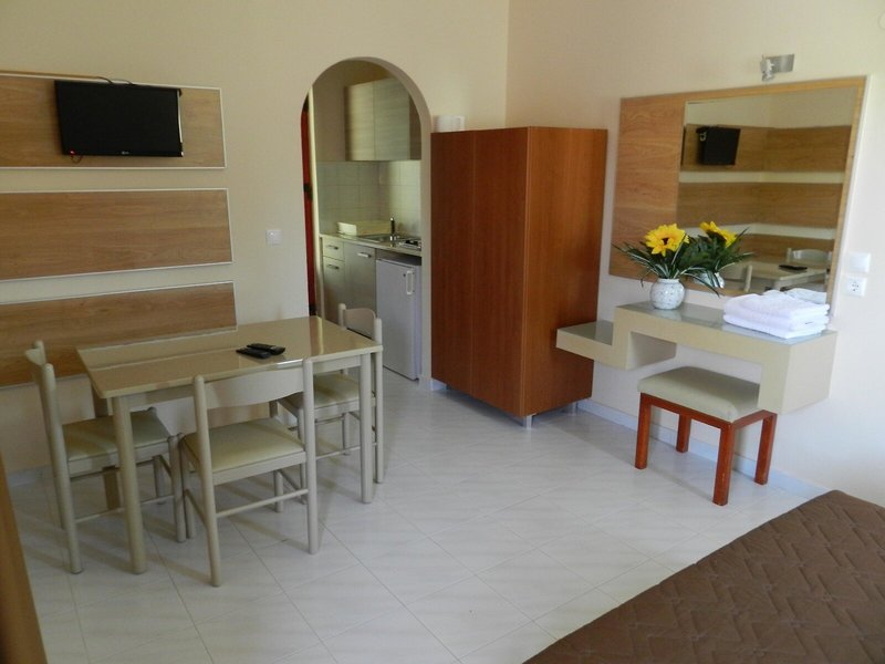 - Apartmán typ 1 (APX1), Apartmán, nefajčiarska izba, výhľad do záhrady, cca 35 m², celkový počet izieb v tomto type izby: 1, rozloženie: kombinovaná obývacia izba/spálňa, 2 samostatné postele, 2 rozkladacie pohovky, klimatizácia: cca 10 EUR, individuálne ovládaná, chladenie, podlaha: dlažba, kuchynský kút, chladnička, rýchlovarná kanvica, jedálenský stôl, sprcha, WC, balkón alebo terasa: s posedením