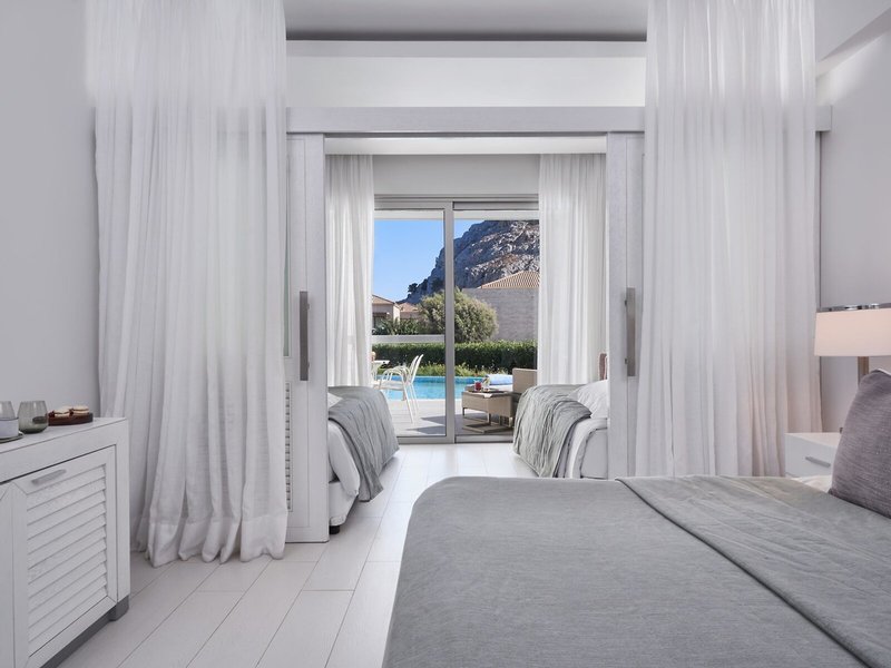 Poloha a okolie Nachádza sa na východnom pobreží Rodosu, pár minút chôdze od piesočnatej/kamienkovej verejnej pláže Kolymbia. Odporúča sa kúpacia obuv. Priamo pred hotelom sa nachádza autobusová zastávka so spojmi do okolitých miest. K najbližším obchodom sa dostanete pešo za 20 minút. Letisko Rhodos je od hotela vzdialené približne 31 km. Čas prenosu cca 60 minút.