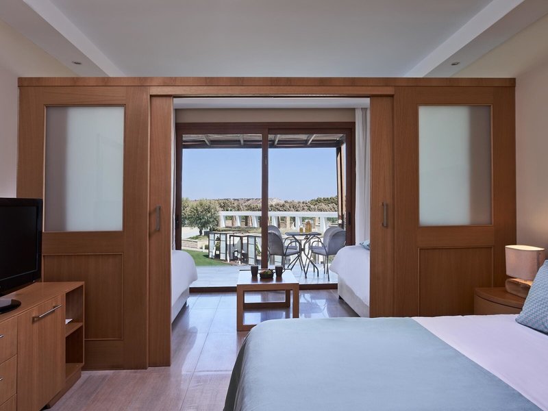 - Platis Superior Family Room (FZY3), Familienzimmer, eingeschränkter Meerblick, ca. 33 m², Gesamtanzahl der Räume in diesem Zimmertyp: 2, Aufteilung wie folgt: bestehend aus 2 Zimmern, optisch getrennt durch Schiebetür, 2 Einzelbetten, 1 Doppelbett, Klimaanlage: ohne Gebühr, Safe: ohne Gebühr, Kaffee-/Teezubereiter, Minibar: ohne Gebühr, Telefon, Internet: WLAN/WiFi: ohne Gebühr, Fernseher: Sat-TV, Reinigungsservice, Badewanne oder Dusche, WC, Bademantel: ohne Gebühr, Slipper: ohne Gebühr, Balkon: mit Sitzgelegenheit