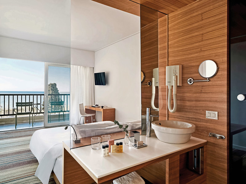 - Junior suita, výhľad na more, posteľná bielizeň, uteráky a matrace zo 100% organickej bavlny, 1 kúpeľňa, sprchovací kút alebo vaňa, sušič vlasov, klimatizácia, trezor, 1 TV (satelitná TV, plochá obrazovka), WiFi, chladnička, balkón