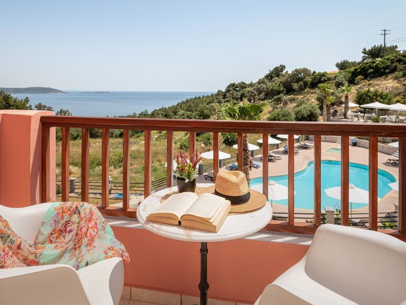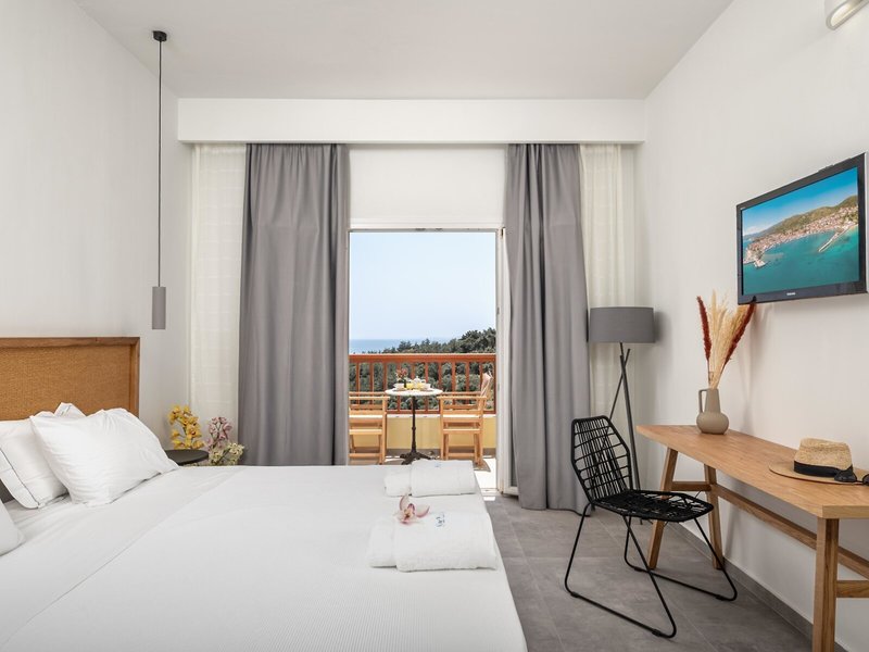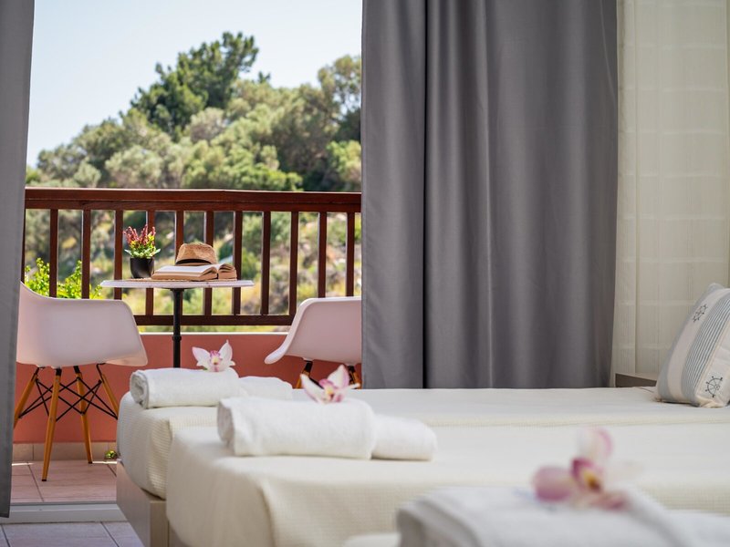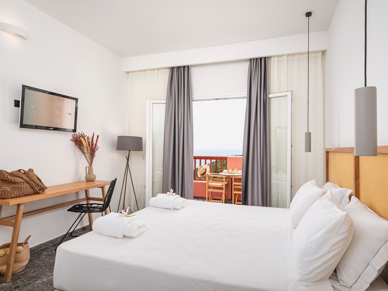 - DOUBLE (DZM1), Doppelzimmer, Mindestalter im Zimmer: 14 Jahre, im Hauptgebäude, Meerblick, ca. 26 m², letzte Teilrenovierung 2020, Gesamtanzahl der Räume in diesem Zimmertyp: 1, Aufteilung wie folgt: 1 Schlafzimmer, 1 Doppelbett, Klimaanlage: ohne Gebühr, Mai - September, individuell regelbar, zentral gesteuert, Heizung: individuell regelbar, zentral gesteuert, Fußboden: Fliesenboden, Safe, Telefon, Internet: WLAN/WiFi: ohne Gebühr, Fernseher, Reinigungsservice: täglich, Dusche, WC, Föhn, Balkon: mit Sitzgelegenheit