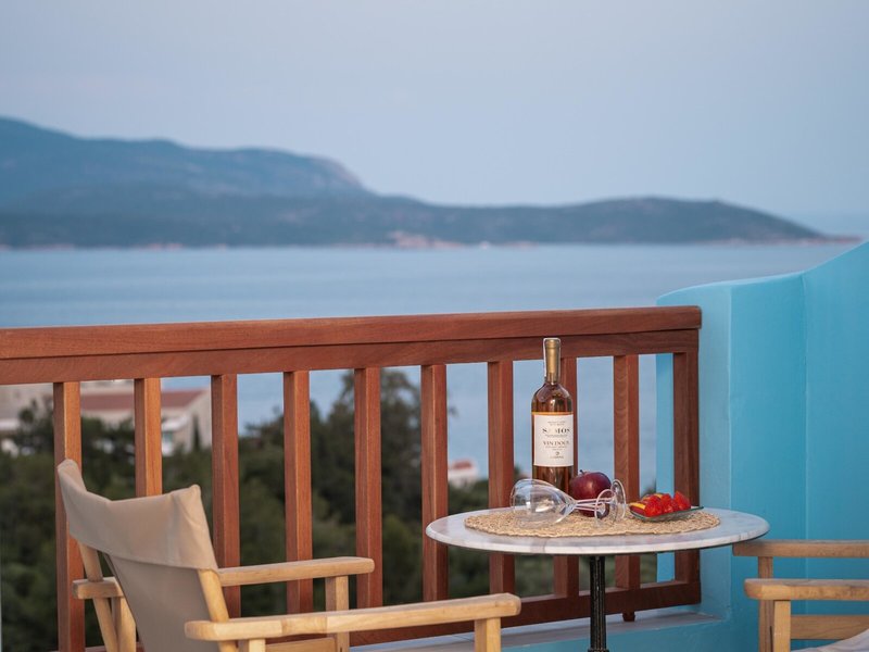Lage & Umgebung Das Hotel liegt in einer idyllischen Umgebung nur etwa 2 km vom Zentrum des historischen Dorfes Pythagorion entfernt. Zum Proteas Strand sind es ungefähr 250 m. Der Flughafen von Samos befindet sich in rund 5 km Entfernung.