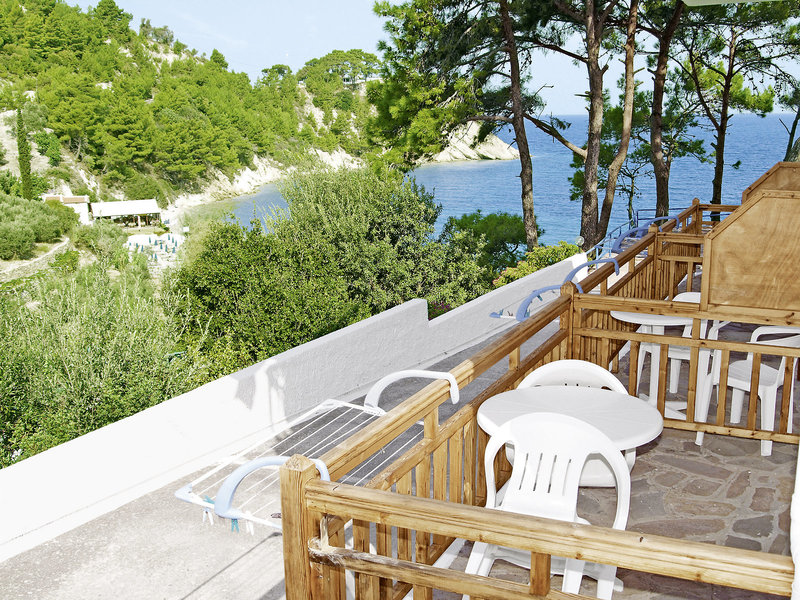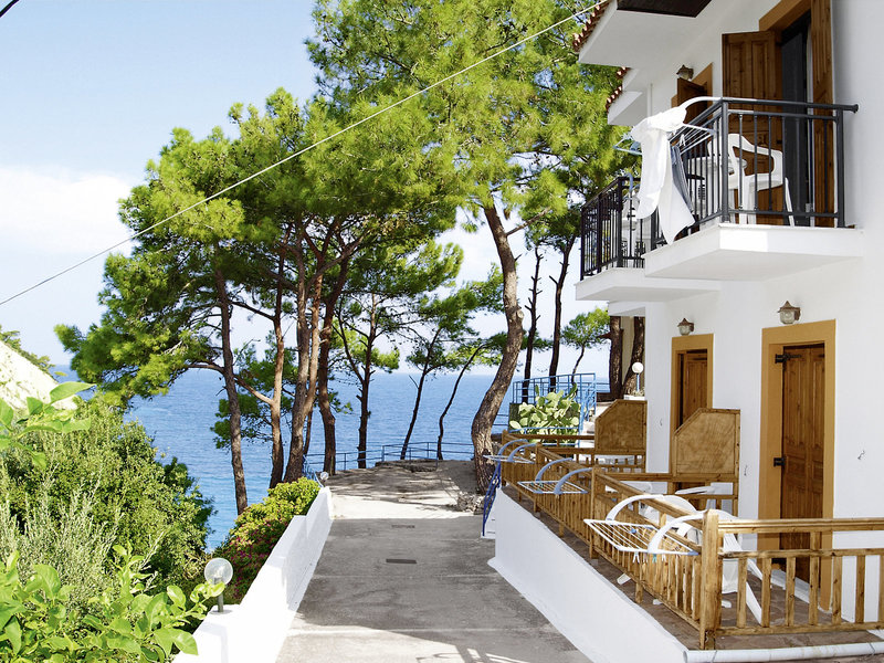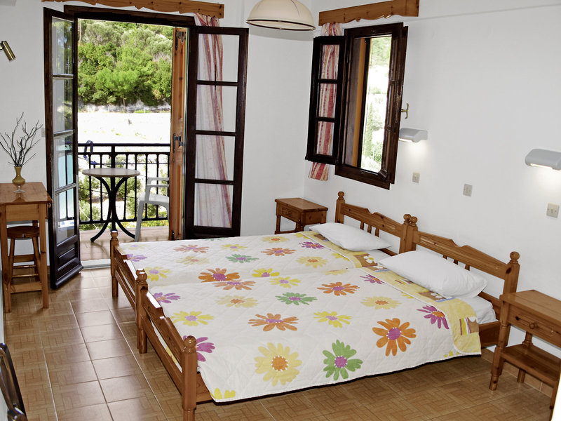 Lage & Umgebung Direkt über einer der schönsten Buchten der Umgebung, am Rand eines Kiefernwaldes, mit wunderbarem Meerblick gelegen. Nach Kokkari ca. 1,5 km (Linienbusverbindung). Transferzeit: ca. 40 Minuten.
