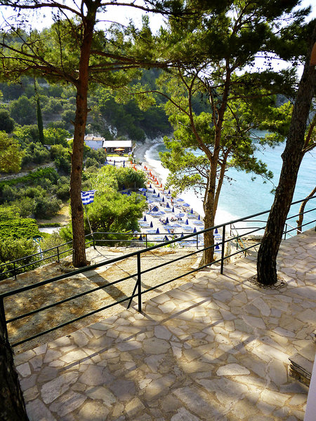 Poloha a okolie Nachádza sa priamo nad jednou z najkrajších zátok v oblasti, na okraji borovicového lesa, s nádherným výhľadom na more. Do Kokkari cca 1,5 km (autobusové spojenie). Čas prenosu: cca 40 minút.