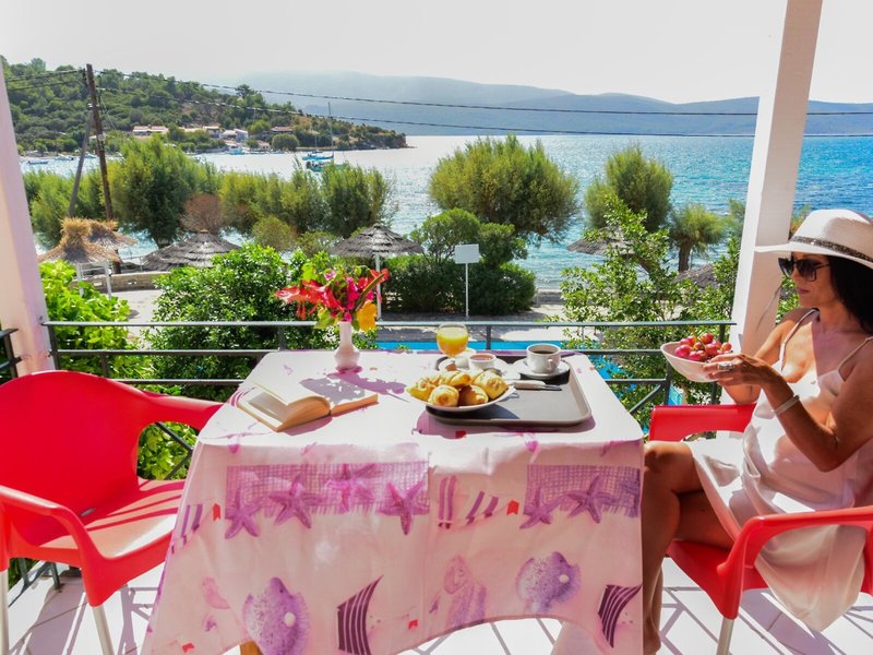 Poloha a okolie Príjemné ticho, priamo na krásnej, jemnej kamienkovej pláži. Ďalší minimarket vzdialený asi 150 m. Hlavné mesto ostrova je vzdialené asi 12 km. Čas prenosu: cca 45 minút.