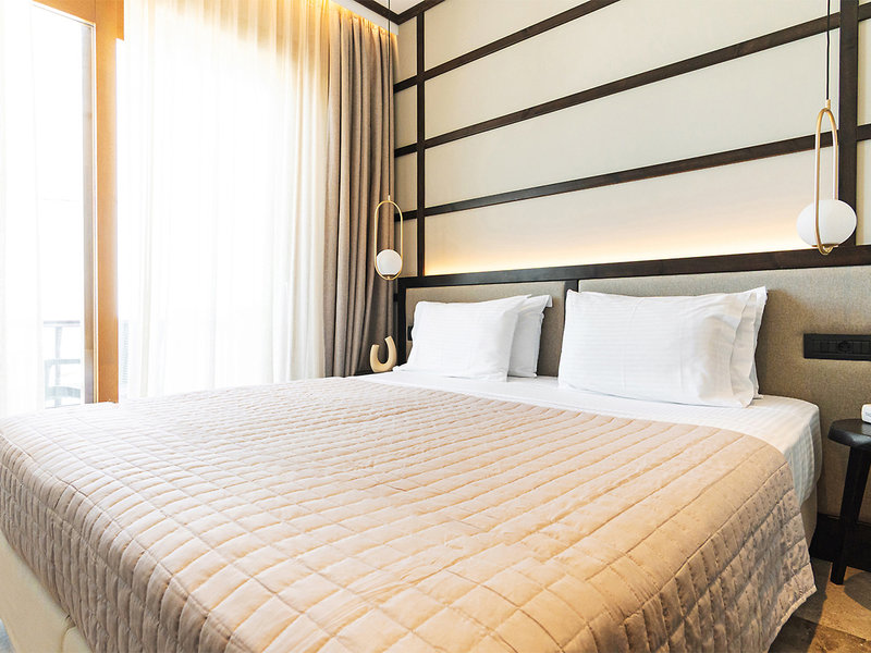 Dvojlôžková izba Premium (DZP, cca 20 m²), zrekonštruovaná (do 30. októbra 2025), moderne zariadená, s klimatizáciou (za poplatok), chladničkou, kávovarom Nespresso®, TV, trezorom, dažďovou sprchou a WC. Balkón s výhľadom na more. Max. 2 osoby.