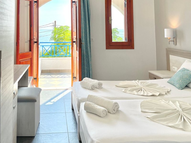 - dvojlôžková izba superior (DZM2), dvojlôžková izba, nefajčiarska izba, pozemná strana, morská strana, výhľad na more, výhľad do záhrady, cca 16 - 20 m², posledná kompletná rekonštrukcia v roku 2019, celkový počet izieb v tomto type izby: 13, detská postieľka: bez poplatku, nutná požiadavka, klimatizácia: cca 10 EUR, máj - október, studený, teplý, trezor: cca 2 EUR, chladnička, kávovar, rýchlovarná kanvica, Internet: WLAN/WiFi: zdarma, TV , sprcha, WC, fén, balkón