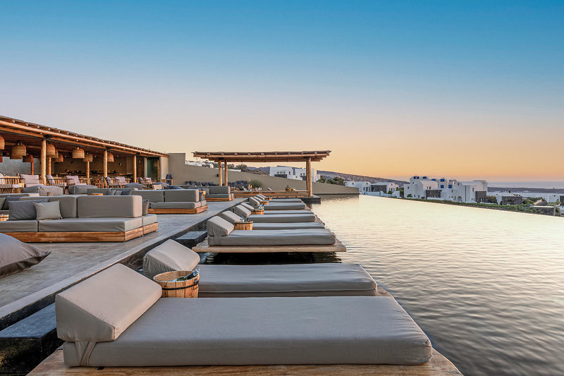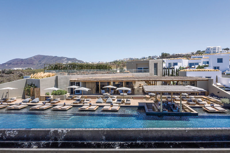 Das Hotel: Im Andronis Arcadia trifft moderne ägäische Architektur auf vollkommene Ruhe und Exklusivität. Nur wenige Gehminuten vom charmanten Zentrum Oias entfernt, bietet das Fünf-Sterne-Hideaway eine Oase der Privatsphäre – perfekt für anspruchsvolle Reisende, die Santorin in seiner exklusivsten Form erleben möchten. Das Hotel bietet 113 Suiten und Villen, jede mit einem eigenen privaten Pool und beeindruckende Ausblicke auf die Ägäis und die berühmten Sonnenuntergänge. Darüberhinaus genießen Gäste zwei große Gemeinschaftspools, zwei erstklassige Restaurants, Spa mit Kneipp-Becken, Gym, erstklassigen Concierge Service, einen Kids Club, Babysitting (auf Anfrage), Parkmöglichkeiten und Transport auf Anfrage. Der Flughafen Santorin (JTR) ist ca. 16 km entfernt, der Fährhafen Thira ca. 20 km.