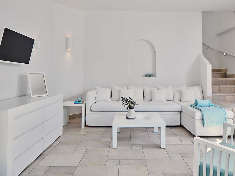 Lage: Zur Hauptstadt "Fira" sind es ca. 12 km. Restaurants, Strandbars und weitere Unterhaltungsmöglichkeiten in unmittelbarer Umgebung.
