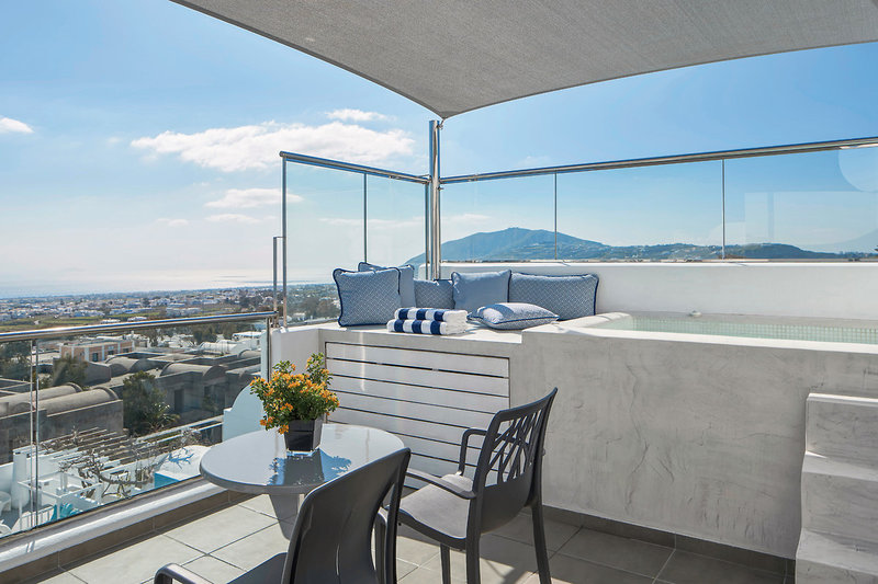 - 26-30 qm, Suite, Meerblick, Dusche, Bademantel, Haartrockner, Klimaanlage, Safe, TV (Sat-TV), WLAN, Wasserkocher, Kühlschrank, Balkon (möbliert), Whirlpool