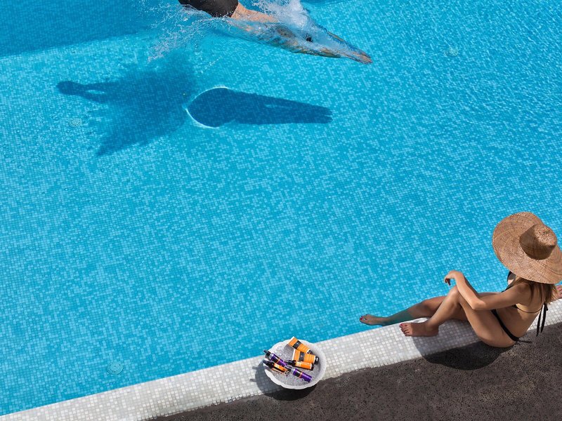 - Pools:Indoor Pool, Outdoor Pool, Sonnenschirme am Pool, Liegen am Pool