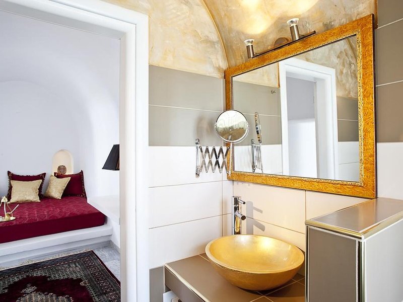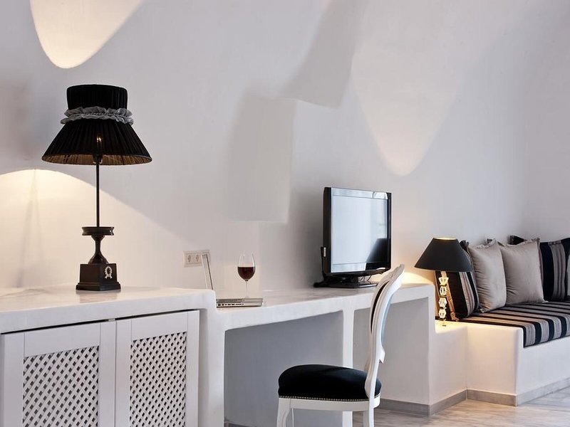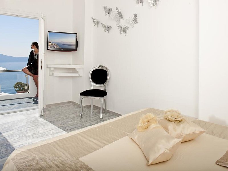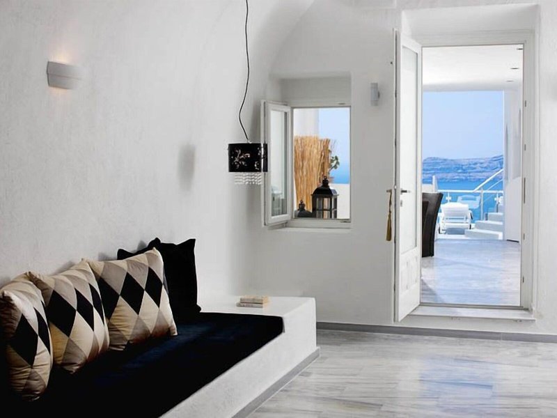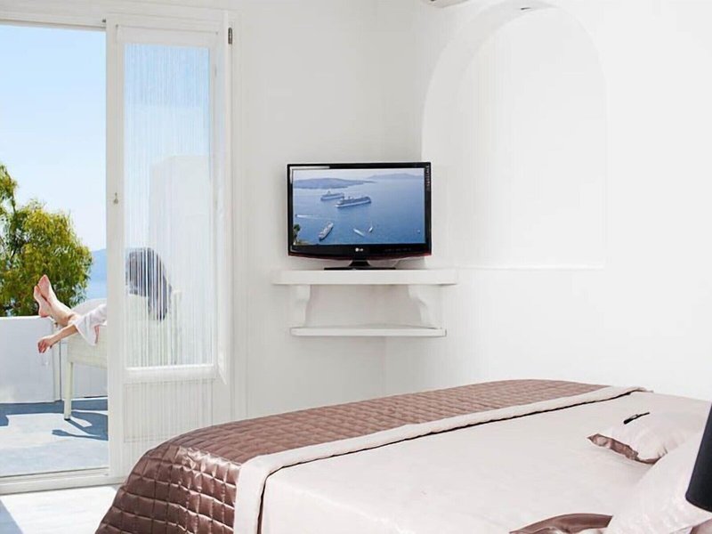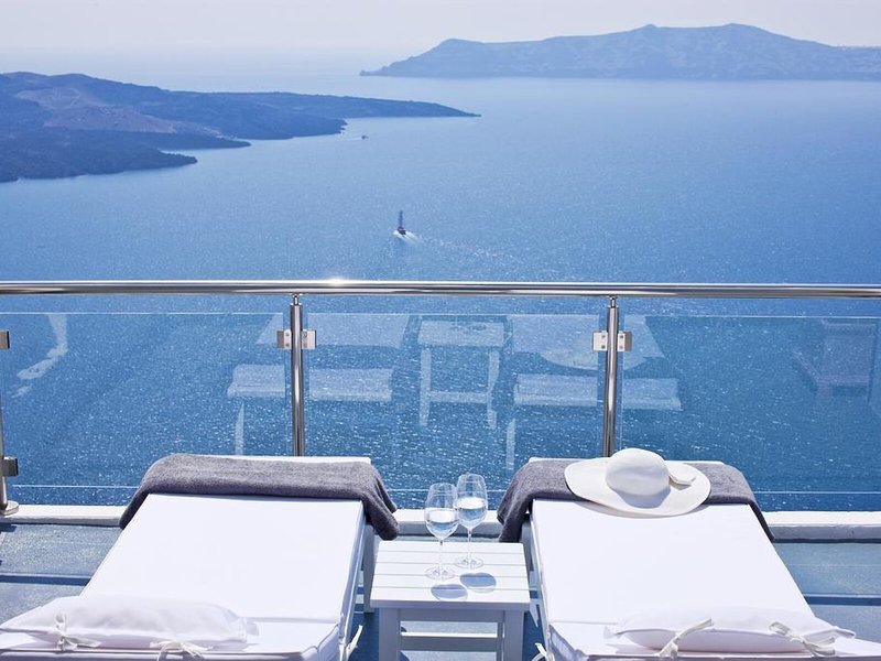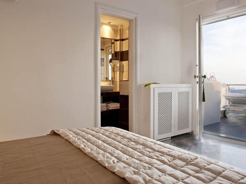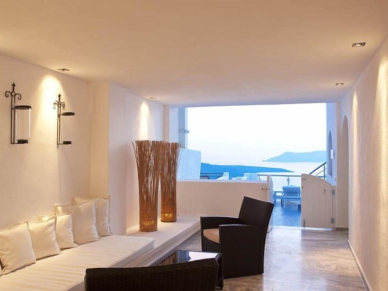 Lage & Umgebung Dieses Hotel befindet sich in einer idealen Lage im Herzen des Ortes Fira, in der Nähe aller berühmten Restaurants und Bars der Insel-Hauptstadt. Dank seiner Lage können die Gäste hier komfortabel am Nachtleben von Santorin teilnehmen und danach einfach bequem zu Fuß wieder zurück zum Hotel spazieren. Die Villen liegen an der Spitze eines Kliffs, direkt gegenüber der Kirche von Fira, und bieten einen uneingeschränkten Blick auf das endlose blaue Meer, den Vulkan und den am häufigsten fotografierten Sonnenuntergang der Welt. Das Hotel befindet sich ganz in der Nähe vieler Tavernen und Geschäfte, die sich schon nach einem kurzen Spaziergang erreichen lassen. Außerdem finden die Gäste nach etwa 150 m eine Haltestelle des Busses sowie einen Taxistand und können so die gesamte Insel auch ohne eigenes Auto bequem erkunden. Zum Archäologischem Museum Fira sind es um die 800 m, der Strand und die Geschäfte von Kamari lassen sich nach ca. 6 km erreichen. Die Entfernung zum Flughafen Santorin (Thira) beträgt etwa 6 km.