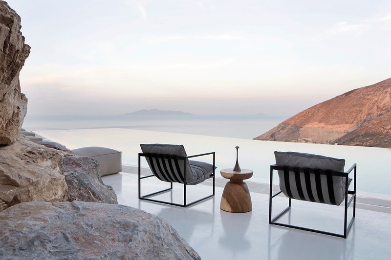 - 46-50 qm, Villa, Meerblick, Bettwäsche, Handtücher und Matratzen aus 100% Bio-Baumwolle, kombinierter Wohn-/Schlafraum, Sitzecke, Sofabett, Dusche, Bidet, WC, Bademantel, Badeslipper, Haartrockner, Klimaanlage, individuell regulierbar, Ventilator, Minibar kostenpflichtig, Safe, Bügelbrett, Bügeleisen, TV (Sat-TV), Wasserkocher, Kaffee/Tee, Terrasse (möbliert), Plunge Pool