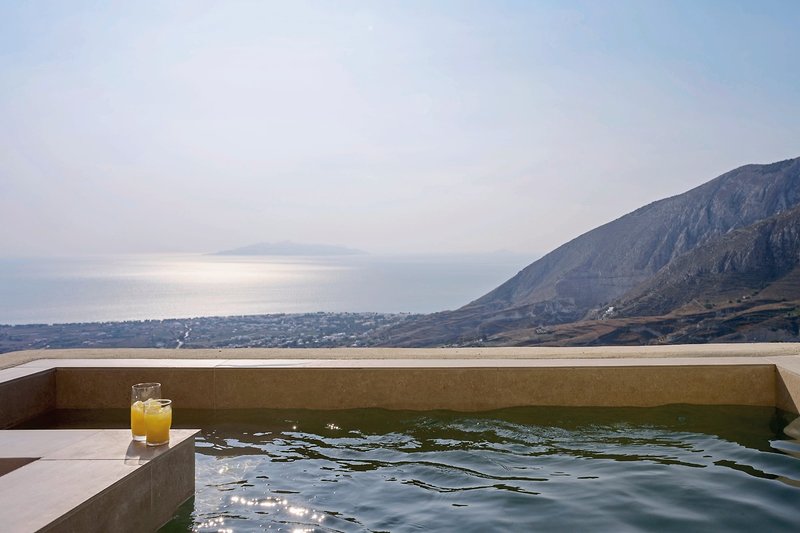 - 46-50 qm, Villa, Meerblick, Bettwäsche, Handtücher und Matratzen aus 100% Bio-Baumwolle, kombinierter Wohn-/Schlafraum, Sitzecke, Sofabett, Dusche, Bidet, WC, Bademantel, Badeslipper, Haartrockner, Klimaanlage, individuell regulierbar, Ventilator, Minibar kostenpflichtig, Safe, Bügelbrett, Bügeleisen, TV (Sat-TV), Wasserkocher, Kaffee/Tee, Terrasse (möbliert), Plunge Pool