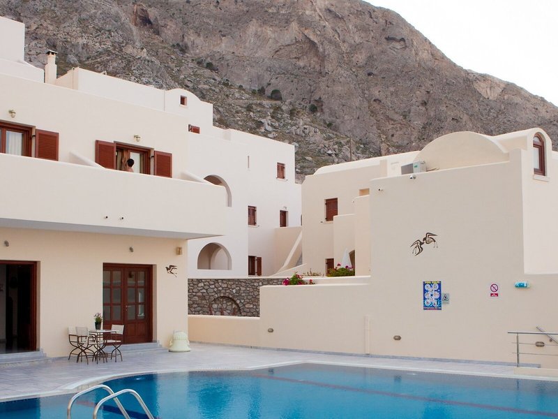Poloha a okolie Hotel sa nachádza na úpätí hory, na ktorej sa nachádza staré mesto Fira. Pláž Kamari, jedna z najlepších na Santorini, je v pešej vzdialenosti.