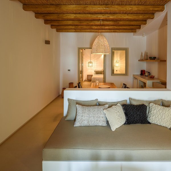 In einer ruhigen Gegend auf der östlichen Seite der Hauptstadt, zwischen Oliven- und Pistazienbäumen, erwarten Sie diese exklusiven Luxus-Suiten. Die Inneneinrichtung wurde von der Natur und der traditionellen Kykladenarchitektur inspiriert und mit modernem Design kombiniert. Alle Suiten blicken auf die blaue Ägäis und sind einzigartig gestaltet, um Ihre Erwartungen zu übertreffen und Ihre individuellen Bedürfnisse zu erfüllen. Weitläufige, private Terrassen mit Sonnenliegen, teilweise mit private Swimmingpools, und ein hochwertiger Service runden das Angebot ab.