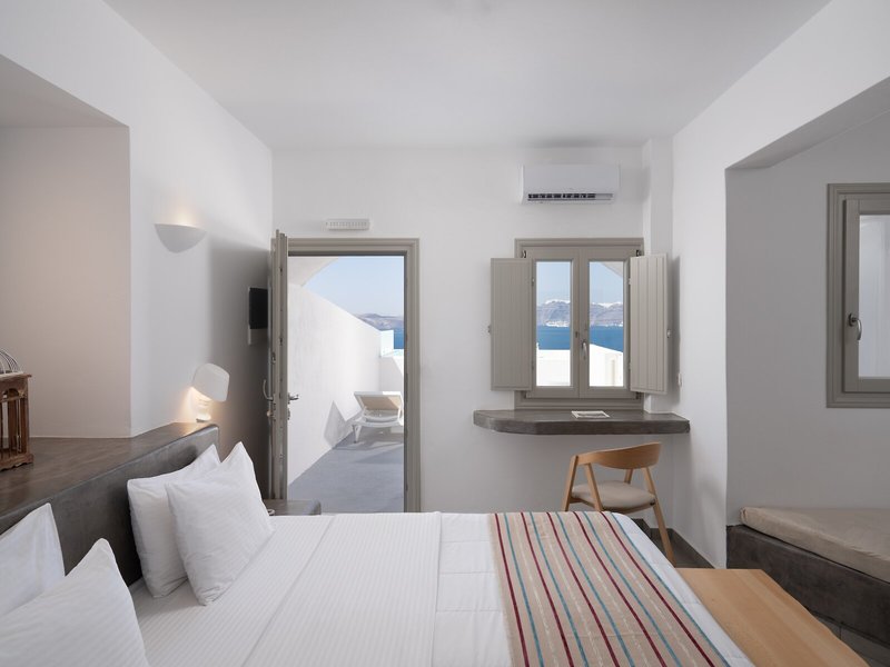 Ďalšie informácie: Informácie o príchode Vzhľadom na veľkolepú krajinu a jedinečnú architektúru na Santorini môže byť dizajn hotelových balustrád nižší ako doma. Ak cestujete s deťmi, pred rezerváciou tohto ubytovania si skontrolujte, či to spĺňa vaše vlastné bezpečnostné požiadavky. Malé deti musia byť počas pobytu na hotelových balkónoch, terasách alebo verejných chodníkoch pod dozorom.
