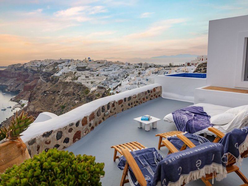 Ďalšie informácie: Informácie o príchode Vzhľadom na veľkolepú krajinu a jedinečnú architektúru na Santorini môže byť dizajn hotelových balustrád nižší ako doma. Ak cestujete s deťmi, pred rezerváciou tohto ubytovania si skontrolujte, či to spĺňa vaše vlastné bezpečnostné požiadavky. Malé deti musia byť počas pobytu na hotelových balkónoch, terasách alebo verejných chodníkoch pod dozorom.